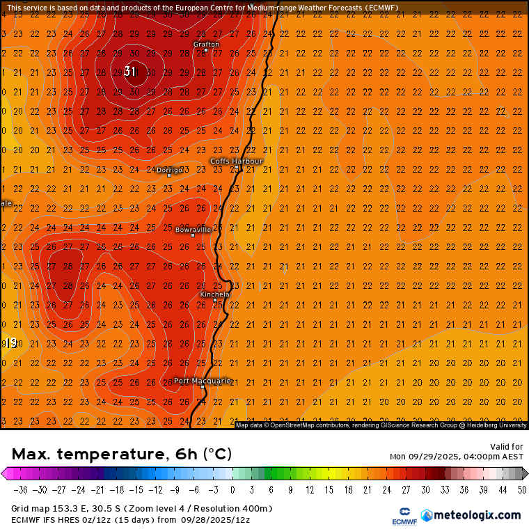 After a warm weekend we’ve got a slightly cooler day incoming today – here’s the max temps forecast for this arvo: