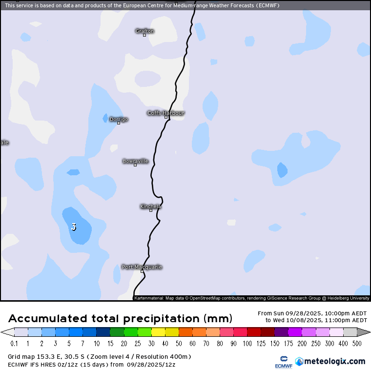 There doesn’t look like much rain incoming over the next 10 days – in fact current rain totals over that period look like this: