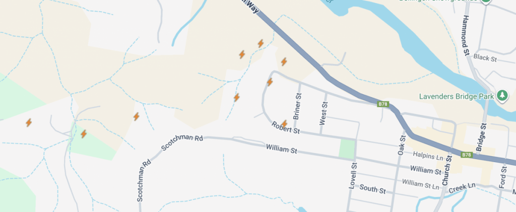 Quite a cluster in the west of town – not surprised to see some power outages in that area after the storms rolled through: