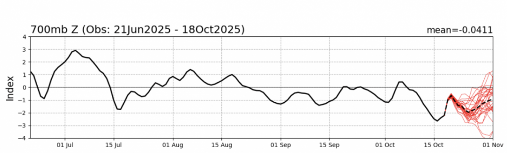 Looking ahead and the southern circulation looks to remain much weaker than normal over coming weeks: