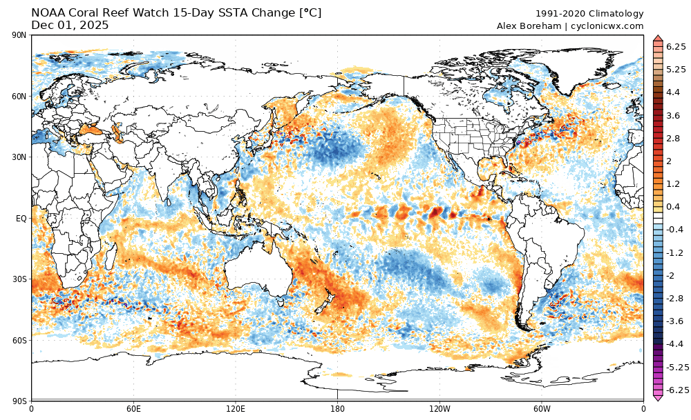 …and as we look at changes we can see that same area is continuing to warm – here’s the changes over the last 2 weeks: