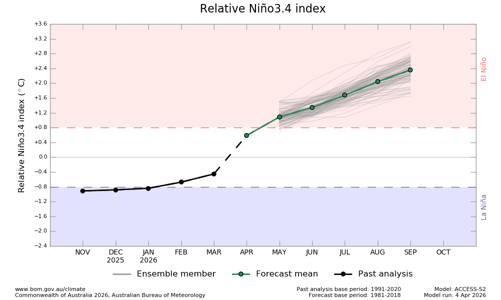 El Nino events release a *lot* of heat into the atmosphere – so likewise expect to see us hitting record levels as we end 2026 and move into 2027.