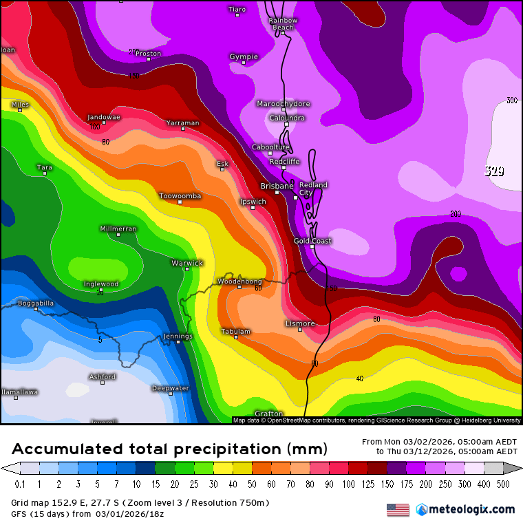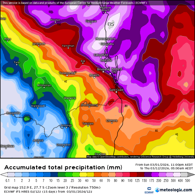 If it does pan out as currently forecast we could see some significant totals across parts of SE Qld. The EC and GFS models show this with their currently forecast rain totals: