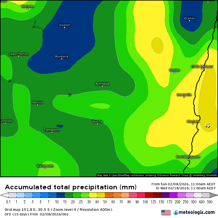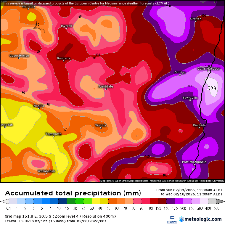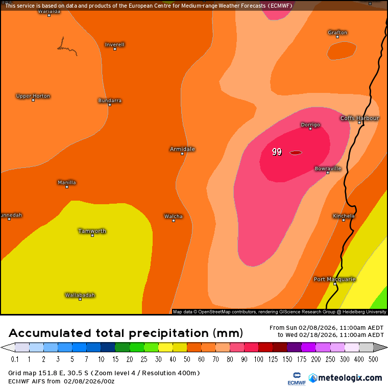 …and it looks like we could see winds turn onshore over coming days. The 10 day AI EC model gives us around 100mm for the period: