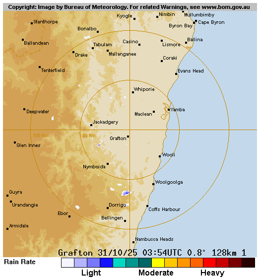In addition to severe thunderstorms, very dangerous thunderstorms are possible for the New England and the north west region in an area north of Armidale, potentially bringing destructive winds (>125km/h), giant hail (>5cm diameter) and localised intense rainfall leading to flash flooding.